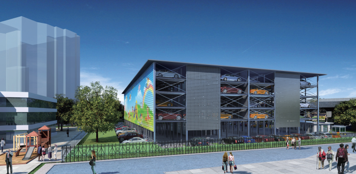 The parking building project is located at the northwest side of the Tongzhou-Beiyuan Station of the Batong Line. Covering a land area of 4,292 square meters, the project is based on the original ground parking lot with 141 parking spaces. The parking building covers a total building area of 6,286 square meters. The multi-layer mechanical parking system covers a building area of 6,181 square meters, with plot ratio of 1.46 and greening rate of 7.6%. There are totally 297 parking spaces, including...