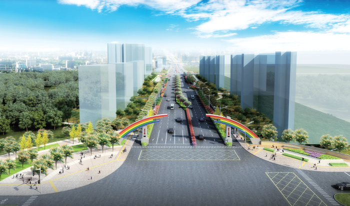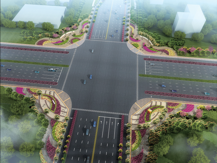 合肥壽縣蜀山現(xiàn)代産業(yè)園區(qū)路網(wǎng)建設(shè)工程位于安徽省壽縣炎劉鎮(zhèn)南側(cè),包括科學(xué)大道、幸福大道、黃樓路和永樂路四條路,其中前兩條爲(wèi)城市主幹路,後兩條爲(wèi)城市次乾路。道路總長8.12公里,設(shè)計(jì)車速分別爲(wèi)60和40公里每小時(shí),紅綫寬60米和45米,設(shè)計(jì)年限15年,混凝土路面。設(shè)計(jì)內(nèi)容包含道路、橋梁、給排水、交通、綠化景觀專業(yè),其中總綠化面積約40公頃。
