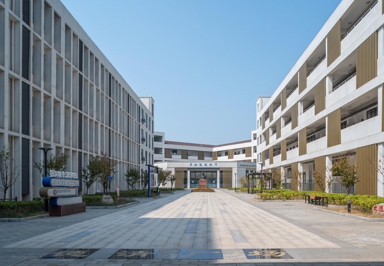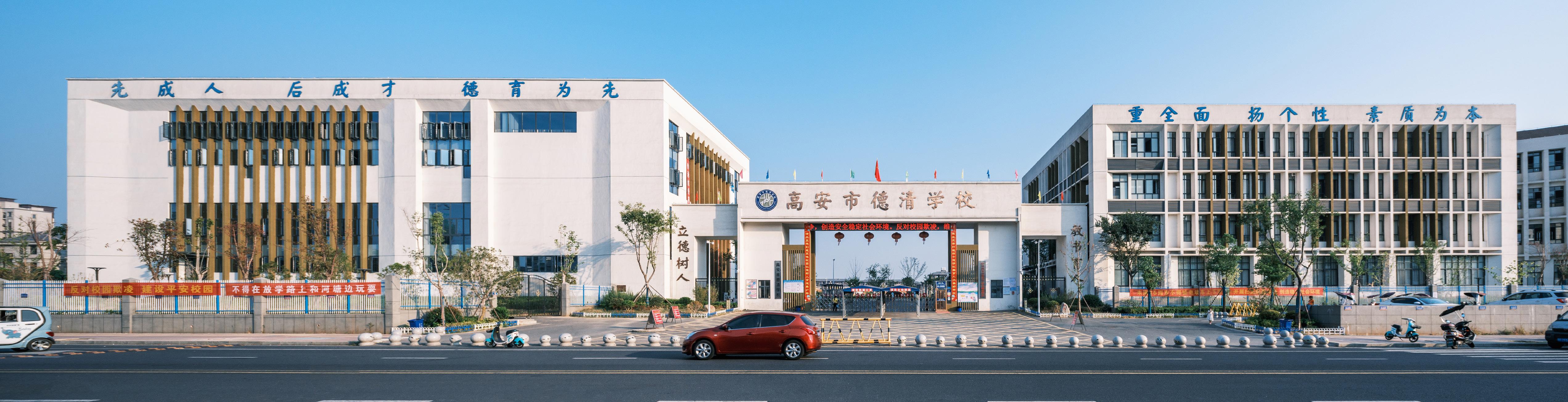 The campus consists of teaching buildings, a library, an art building, an office building, a stadium, dormitories, canteens and a track field. The entrance lies on the north, facing Deqing Road. The west of the entrance is the office building while on the east is the stadium bordering on a track field on the south. Four teaching buildings sit on the south of the office building, two of which are designed for secondary school students, the other two for pupils. The campus has another entrance on t...