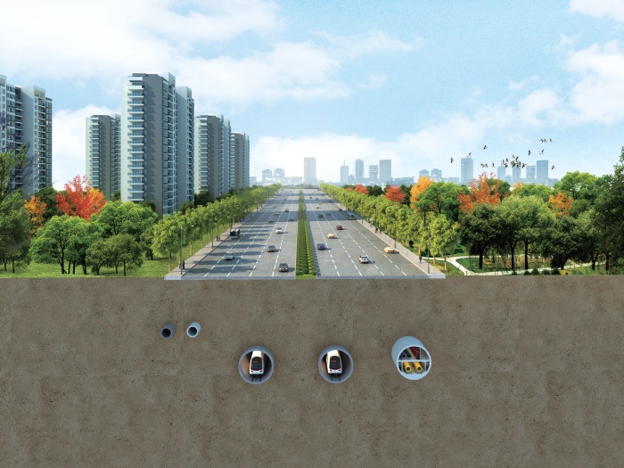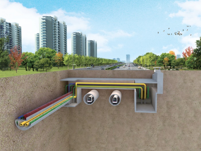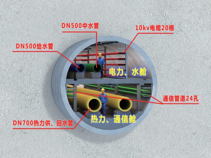 工程採(cǎi)用盾構(gòu)法施工,標(biāo)準(zhǔn)斷面內(nèi)徑5.4米,入廊管線含:給水、中水、供熱、通信、10kv電纜五種管線,並保留了部分增容空間。全線共設(shè)置14個(gè)工藝井,6個(gè)盾構(gòu)井,共有20個(gè)節(jié)點(diǎn)井,標(biāo)準(zhǔn)斷面埋深為7-25米。