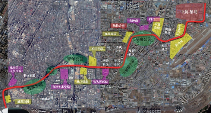 專案位於瀋陽市渾北主城區(qū)域內,全長約12.6公里,一標段起于南運河文體西路北側綠化帶內,終至青年公園,標段線路全長度4.52公里。