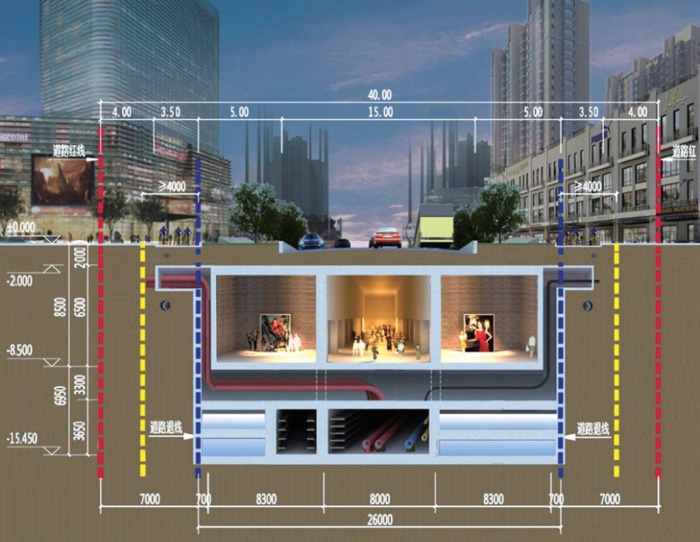 The planned project land is located in the old commercial center area of Erqi District of Zhengzhou, Henan Province, at the intersection of Erqi District, Jinshui District and Guancheng District.The comprehensive pipe rack will be developed along with the underground commercial space and the land resources will be utilized in an integrative way in order to enhance the comprehensive bearing capacity of the municipality. The development and utilization of the underground space will be conducted under Erqi Road and Taikang Road. A three-floor structure will feature the project, with the first floor underground as underground space, second floor underground as pipe rack interlayer and third floor underground for pipe rack.