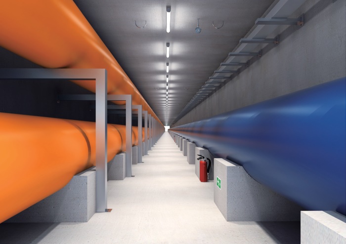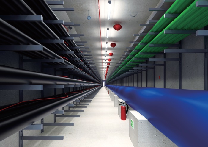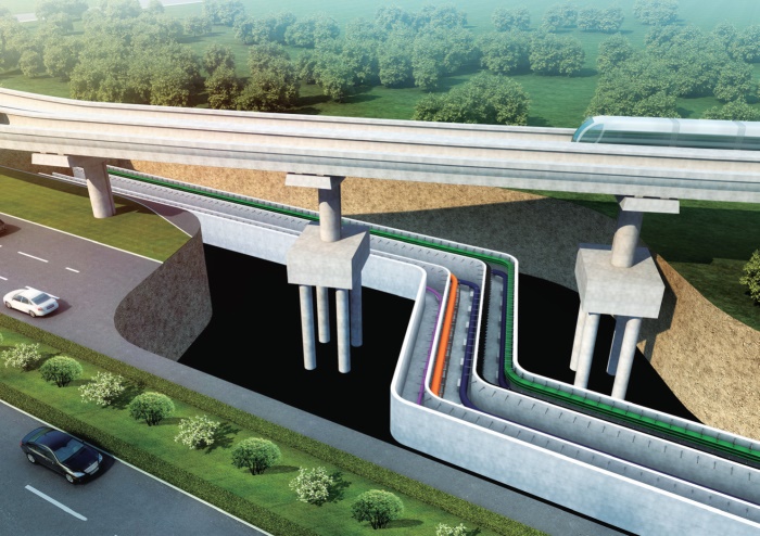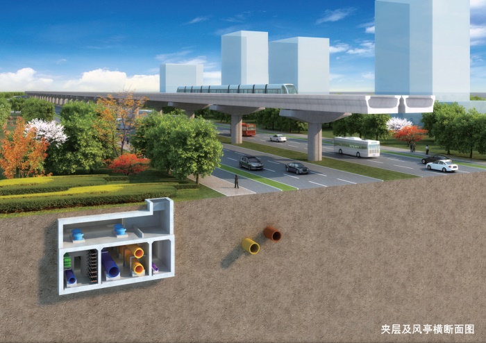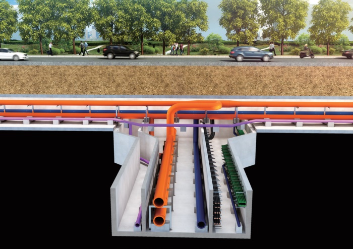 Situated down the 20-meter green belt on the north side of Gongbei Road, the pipe rack has been laid along the central line of parallel roads. Starting from the coastal highway on the northwest side of Wangjiataihou Village of the Langya Township, the pipe rack ends at G204 National Highway. The main pipe rack is about 12.77 kilometers long, and the tributary pipe rack 545 meters long. The municipal pipelines entering the rack include water supply pipeline, recycled water pipeline, sewage pipeline, heating pipeline, natural gas pipeline, power pipeline, and communication pipeline. The open cut method has been used for the construction, with the total construction cost reaching 1368.1489 million Yuan, of which construction and erection expenses amounted to 1276.3547 million Yuan.