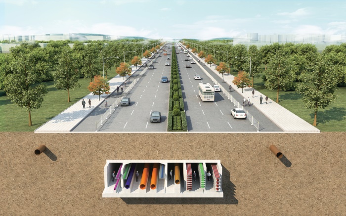 Pipelines to enter the pipe racks include water supply pipeline, sewage pipeline, power pipeline, communication pipeline, natural gas pipeline, heating pipeline and the recycled water pipe position will be left in advance.Jingshui Road and Yingbin Road are skeleton roads of Huayuankou Township of Huiji District. They are the main passageways of the entire district as well as the transport passageways for the trunk pipelines of the entire district. Construction of the comprehensive pipe racks can effectively improve the urban quality of the district and make intensive use of land to provide municipal base support for the orderly promotion of the village urbanization work.