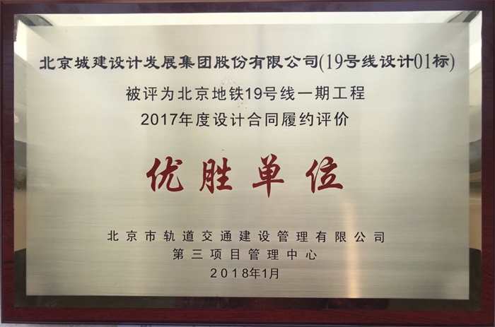 UCD Rated as Champinship Unit 2017 for the Execution of the Design Contract of Subway Line 19 of Beijing