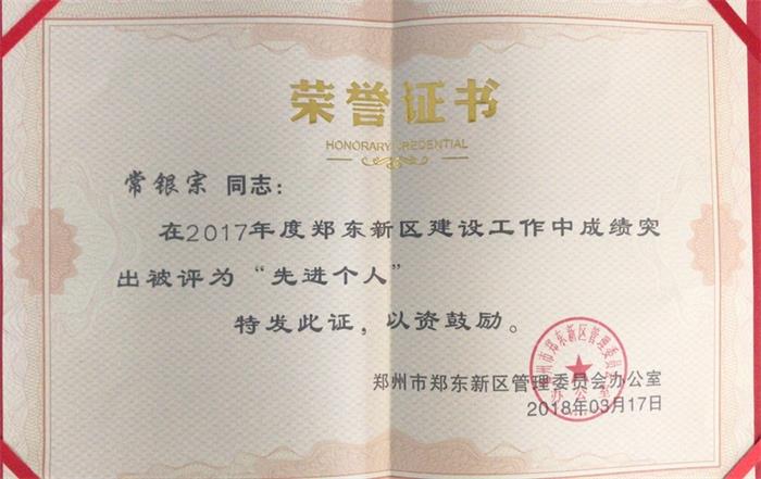 3月28日,鄭州市鄭東新區(qū)管理委員會召開表彰大會,公司喜獲表彰,被評為2017年度鄭東新區(qū)2017年勘察設(shè)計先進單位,地空管廊中心常銀宗被評為先進個人。