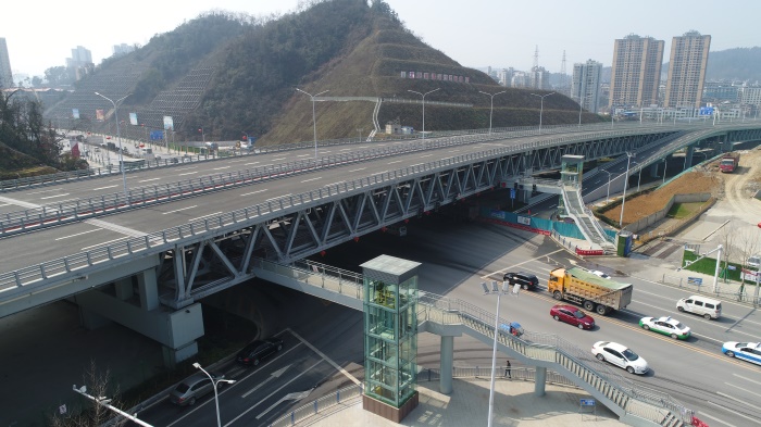 Fresh concepts have been used for the construction of the bridge. In the construction, the truss space has been utilized to the full for the establishment of sidewalks and landscape illumination to save urban land and space, clarify road functions and avoid the disturbance of pedestrians and vehicles. The road leads fast and straight from the central urban area to Xinpu New Area and the fabricated steel bridge is conducive to energy conservation and is ecology-friendly. The Fenghuangshan—Liyixincheng Expressway is an urban expressway to facilitate the rapid development of the Xinpu New Area as well as a way for people’s wellbeing to preserve clear waters and green hills and, moreover, it is the most beautiful way in the central urban area of Zunyi.