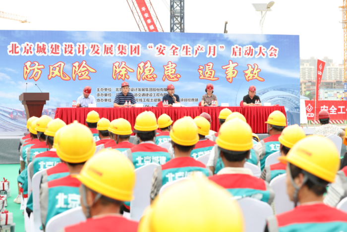 六月是一年一度的全國“安全生産月”,今年“安全生産月”活動主題是“防風險、除隱患、遏事故”。6月5日下午,公司在地鐵16號綫22標項目召開了2019年“安全生産月”活動啓動會。黨委書記李國慶,黨委副書記、工會主席彌建洲,副總經理王良、安全總監(jiān)兼安全工程部部長賀軍華、軌道公司經理廖秋林等領導出席會議;在京項目項目經理、安全副經理、生産副經理及工人代表等參加了會議。