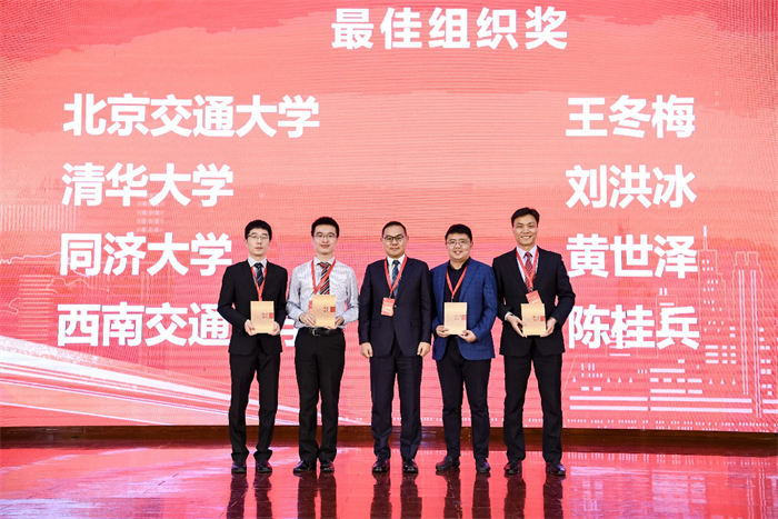 在頒獎(jiǎng)現(xiàn)場,中國土木工程學(xué)會理事長郭允沖、北京城建集團(tuán)董事長陳代華、北京交通大學(xué)副校長余祖俊、同濟(jì)大學(xué)副校長顧祥林、西南交通大學(xué)副校長何川、清華大學(xué)科研院副院長鄧甯分別發(fā)表致辭,對本屆大賽圓滿舉辦表示祝賀,並對所有參賽項(xiàng)目及團(tuán)隊(duì)給予了肯定和感謝。