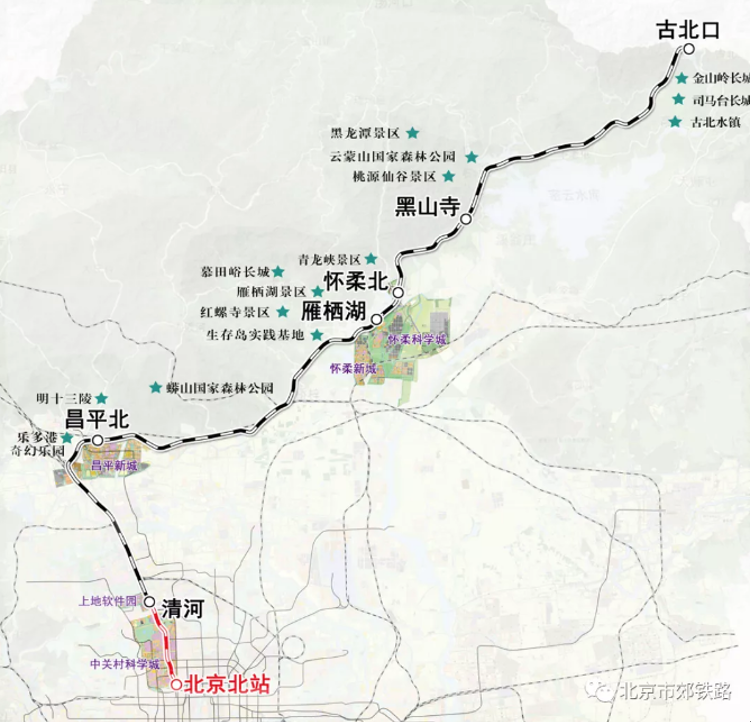 The project has been reconstructed based on such existing rail resources as Beijing-Zhangjiakou high-speed railway, Beijing-Tongzhou railway line, as well as station and depot resources. The train operation diagram is more of a state-owned railway operation diagram to meet the needs for fast commuting between the central city and the Huairou Science City and for passenger flows bound for suburban tourism in Beijing. Featured on the CRH6F-A 4-section marshalling vehicle, the train departs from a fixed platform at the railway station, with fast access channels and fare system akin to urban subways (including transportation card, mobile phone APP, etc.) provided. And measures on security check mutual trust, strengthened transportation connections, etc. have been unveiled to make it easier for passengers to travel and to integrate with the urban public transportation system.