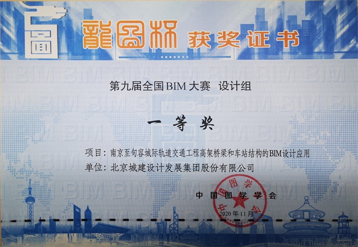 11月26日,由中國圖學(xué)學(xué)會舉辦的2020第九屆“龍圖杯”全國BIM大賽頒獎儀式在北京召開,本次大賽共有參賽作品1999項,經(jīng)過初評、複評、入圍審核、終評答辯等環(huán)節(jié),設(shè)計組最終評選出一等獎8名。市政院橋梁所申報的《南京至句容城際軌道交通工程高架橋梁和車站結(jié)構(gòu)的BIM設(shè)計應(yīng)用》在本次大賽中榮獲設(shè)計組一等獎。
