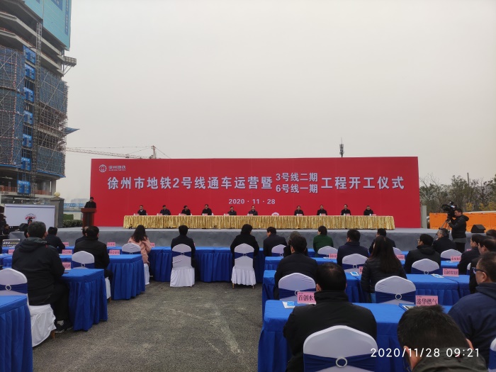 The trial operation ceremony of the phase-I project of Line 2, and also commencement ceremony of the phase-II project of Line 3 and the phase-I project of Line 6 was held at Administrative Center Station. The ceremony was presided over by Zhao Liqun, Deputy Mayor of Xuzhou City, and Zhuang Zhaolin, Deputy Secretary of the Municipal Party Committee and Mayor and some other leaders delivered speeches respectively. Zhou Tiegen, Secretary of the Municipal Party Committee announced that the phase-I project of Xuzhou Rail Transit Line 2 was officially completed for trial operation. Yu Songwei, Deputy General Manager, attended the ceremony as a guest on behalf of the design organizations.