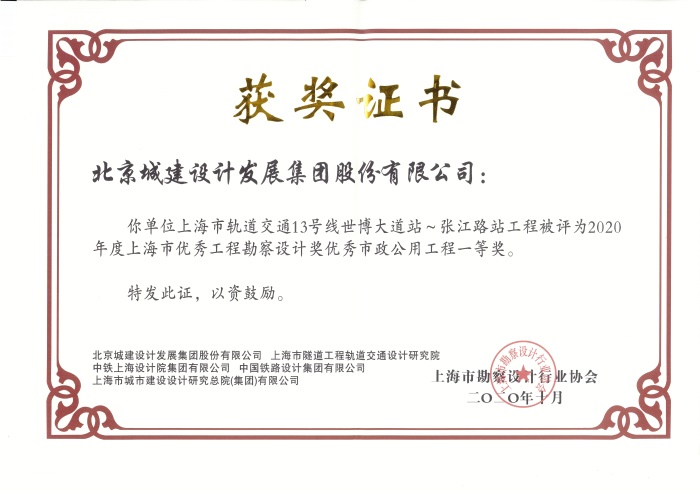 Congratulations to UCD for winning First Prize for Excellent Municipal Public Engineering of Survey and Design Awards of Shanghai for Excellent Engineering 2020