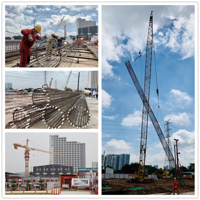 In order to enter the site and begin construction as soon as possible, the 1st working area of Guangzhou Line 10 actively contacted the Land Management Department of the Headquarter and the 3rd/10th Construction Management Department, coordinated and communicated repeatedly with the local units. On March 25 this year, all sites of the phase II were handed over. On March 27, the project team immediately set about retaining piles construction in phase II comprehensively through the scientific method and reasonable arranged working procedure. In just 45 days, It successfully built 365 retaining piles, 73 uplift piles, 637 jet grouting piles, and 580 single axial mixing piles. Among them, the retaining piles and uplift piles adopts a construction technology of long liners and dry drilling, which greatly accelerated the site construction.