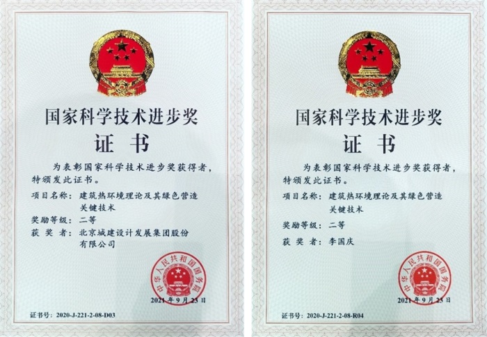 11月3日,2020年度國家科學技術(shù)獎勵大會在北京人民大會堂隆重召開,共評選出264個項目、10名科技專家和1個國際組織。北京城建設(shè)計發(fā)展集團榜上有名,由北京城建設(shè)計發(fā)展集團黨委書記、副總經(jīng)理李國慶參與完成的“建築熱環(huán)境理論及其綠色營造關(guān)鍵技術(shù)”,以取得的顯著經(jīng)濟和社會效益受到評委會高度認可,榮獲國家科學技術(shù)進步獎二等獎。
